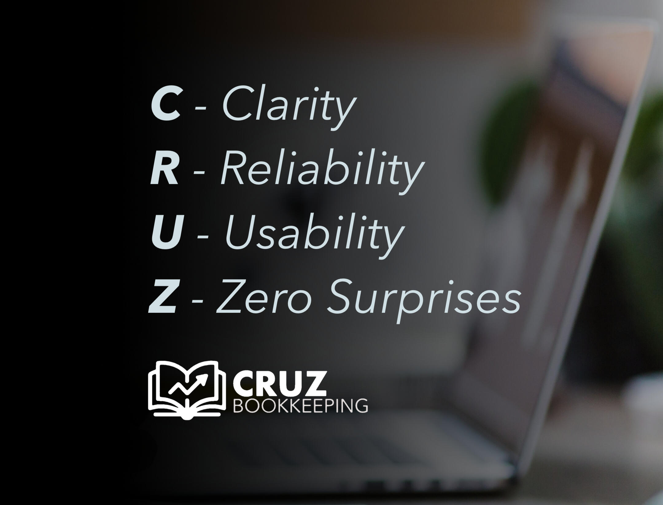 Our goal is Zero Surprises. Whether it’s a cash crunch or a missed detail, we help you stay ahead of the curve. With clean, timely books and a proactive mindset, you stay in control, not stuck reacting.When your financials are accurate, timely, and easy to understand, you can make smarter decisions with confidence. That’s what simple, no-fluff bookkeeping should look like—and that’s what we deliver.Count on CRUZLet’s get you started the CRUZ way by taking the bookkeeping burden off your plate. Contact me TODAY for a FREE evaluation of your books and enjoy special new client pricing.