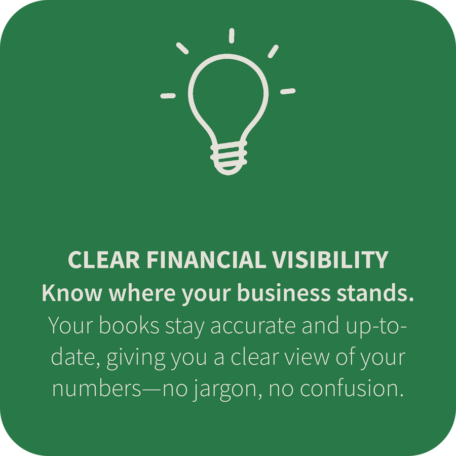 Take back your time and grow your profit—without the stress of bookkeeping. With your finances clean, current, and in trusted hands, you can focus on what matters most: your business.Books off your plate. Finances in order. More time, better decisions, and room to grow—without the stress.Here’s how we do it — the CRUZ Way:C — Clarity